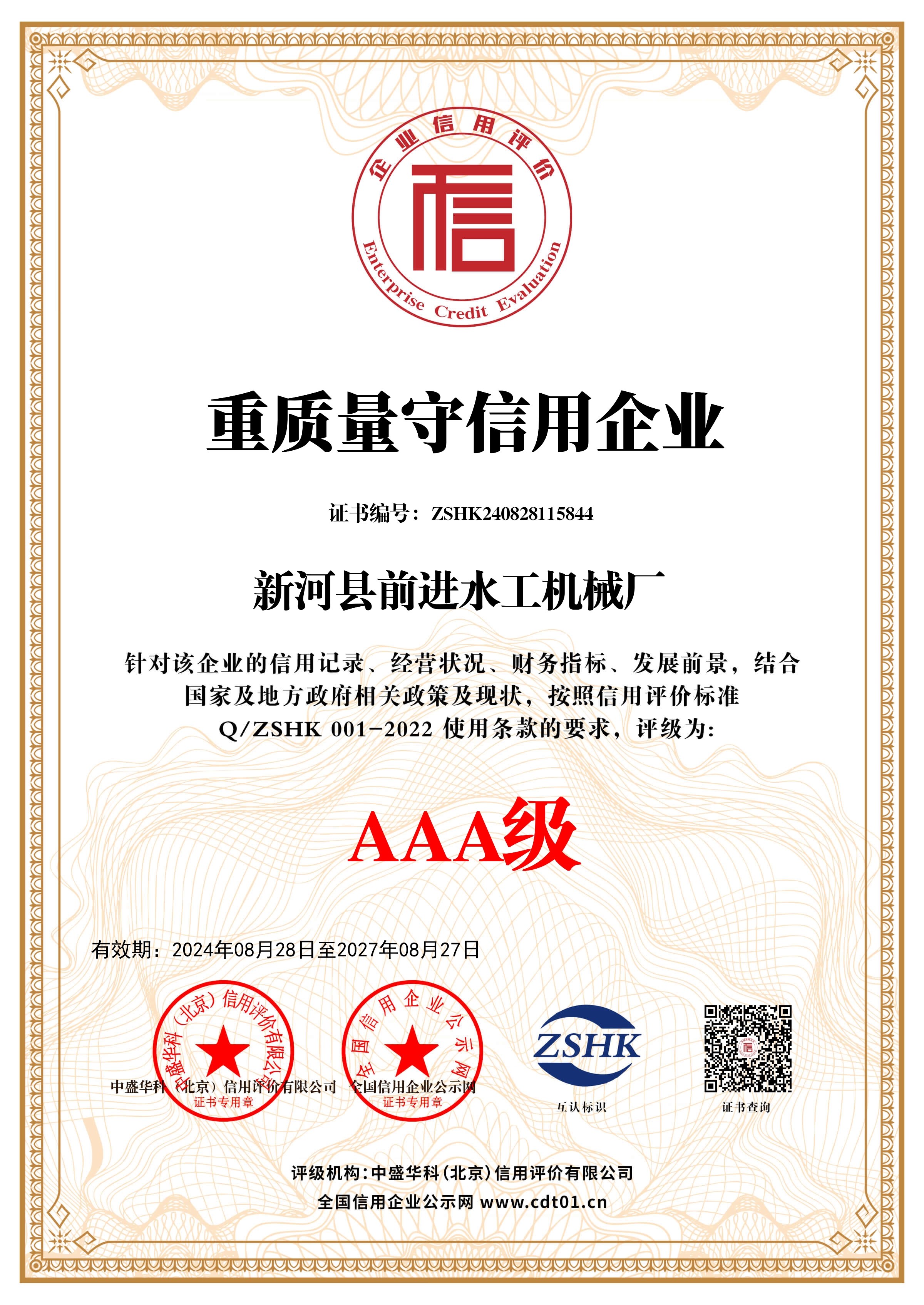 企业资信等级证书